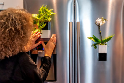 Capill’O Cube® peut se poser partout naturellement, comme tous les cache-pot. Mais grâce à sa surface aimantée, il est aussi très à l'aise sur les surfaces verticales en fer (porte du frigo, rambarde d’escalier ou de balcon...).